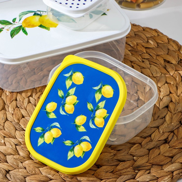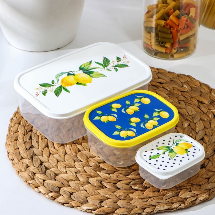 Набор пищевых контейнеров Доляна «Лимоны», 3 шт: 150 мл, 500 мл, 1,2 л, прямоугольные