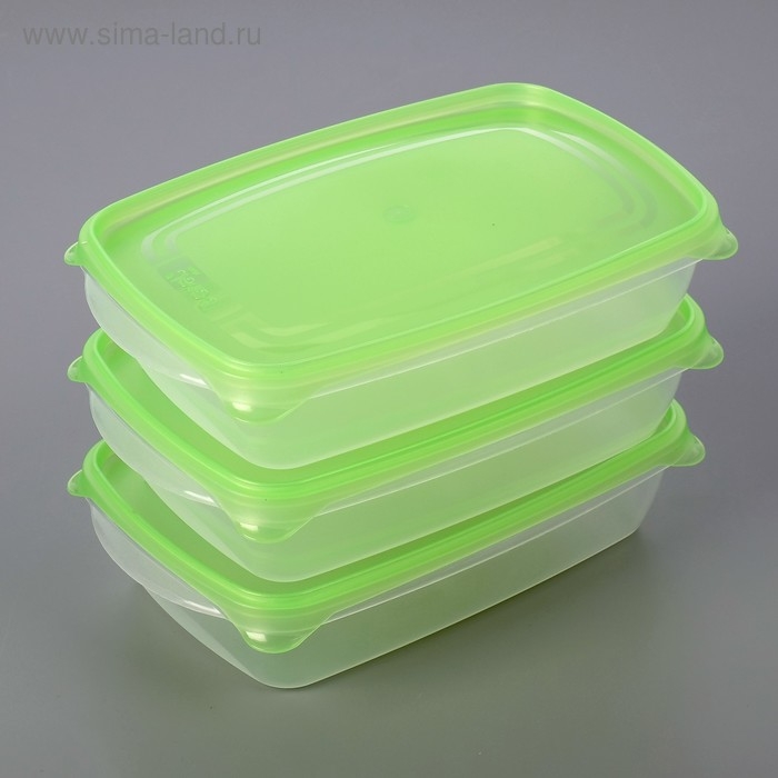 Набор пищевых контейнеров «Трио», 3 шт, 1,3 л, прозрачные, крышки микс