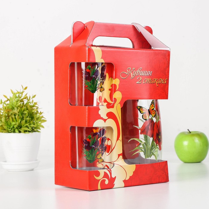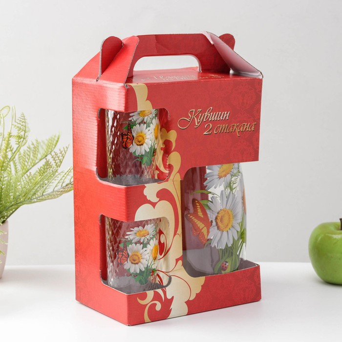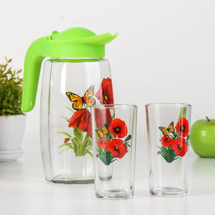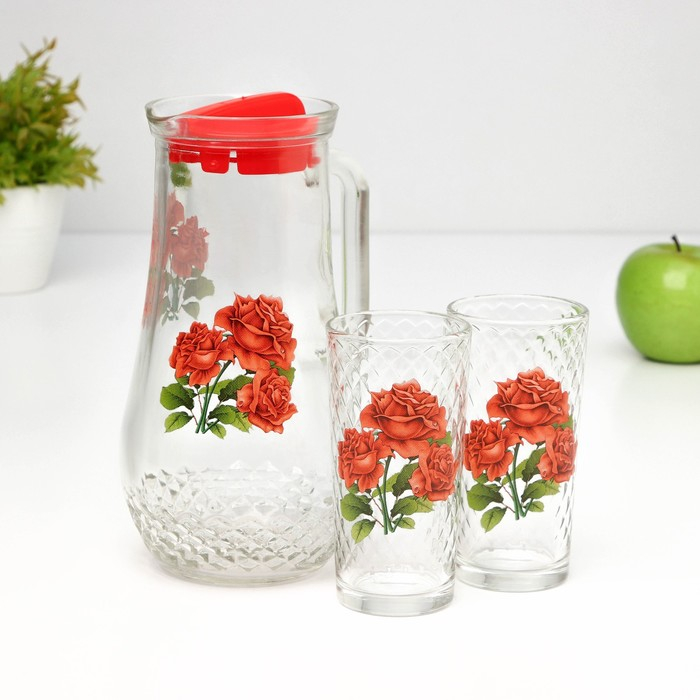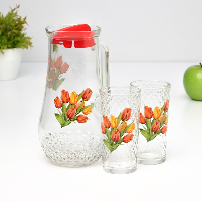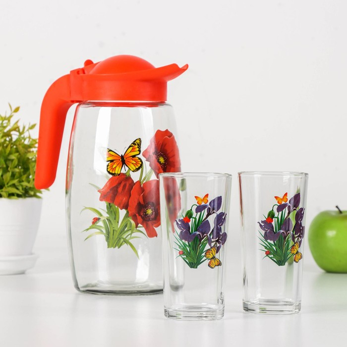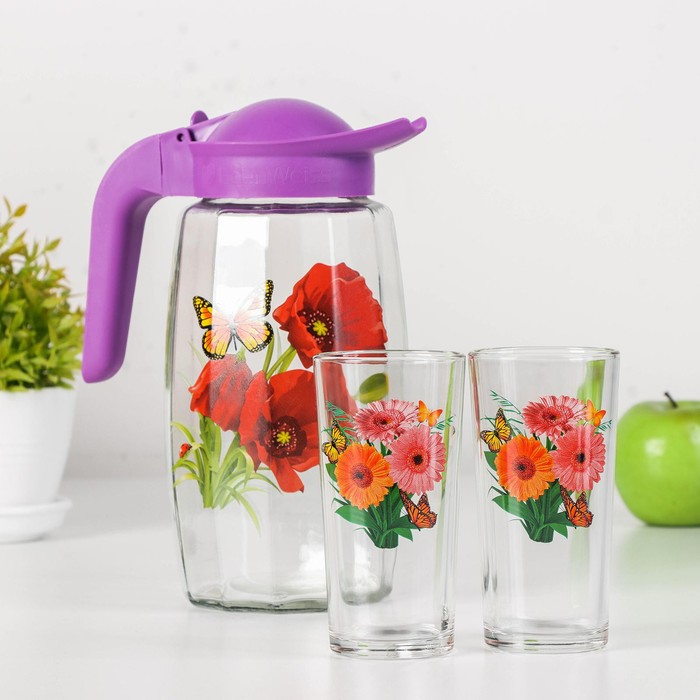 Набор питьевой «Букеты», 3 предмета: кувшин 1,7 л, стаканы 230 мл, 2 шт, рисунок МИКС