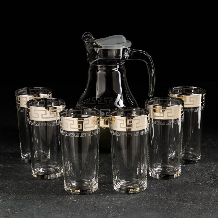 Набор питьевой «Нэро», 7 предметов: кувшин 1 л, стакан 230 мл, 6 шт, цвет напыления золотой