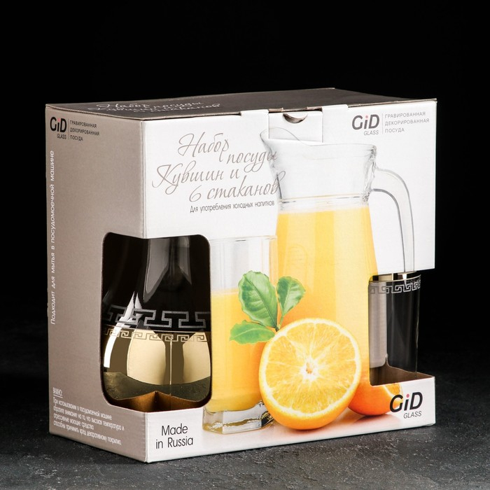 Набор для напитков из стекла «Эко», 7 предметов: графин 1 л, 10×24,5, 6 стаканов 250 мл, цвет золотой