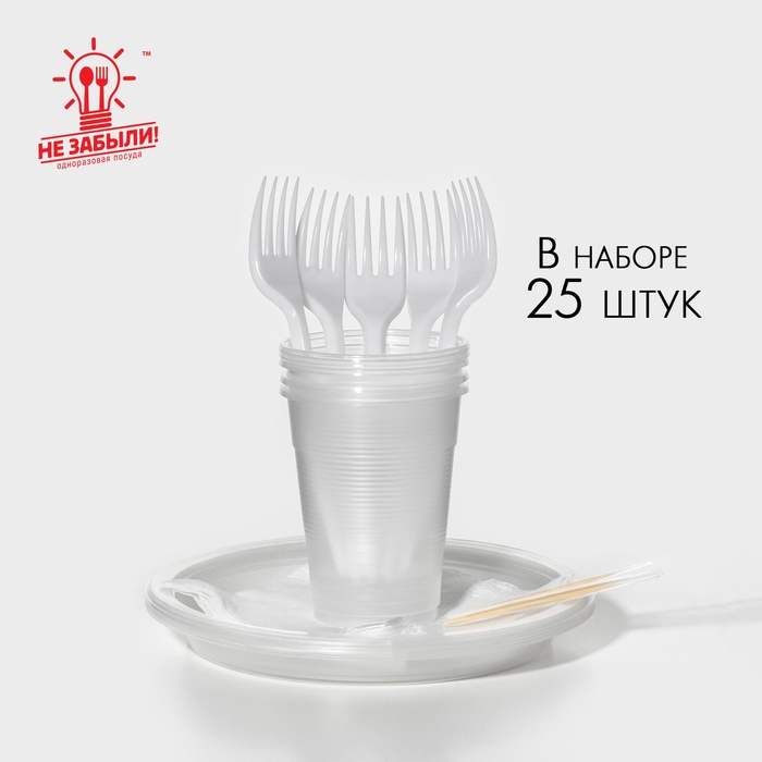 Набор пластиковой одноразовой посуды на 5 персон Не ЗАБЫЛИ!