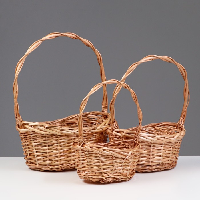 Плетёные корзины – выбеленные из цельного ивового прута с продольной ручкой. Имеют прочное основание и боковины.