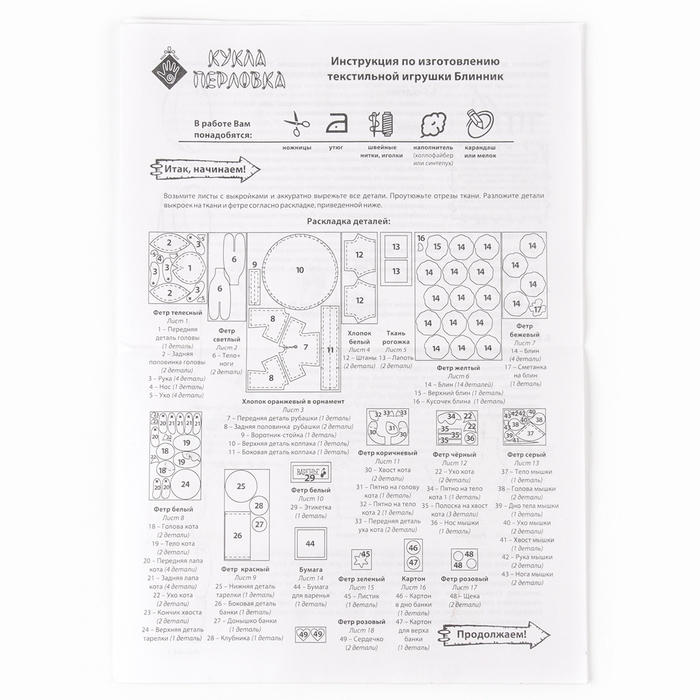Набор по изготовлению текстильной игрушки «Блинник», высота — 17,5 см