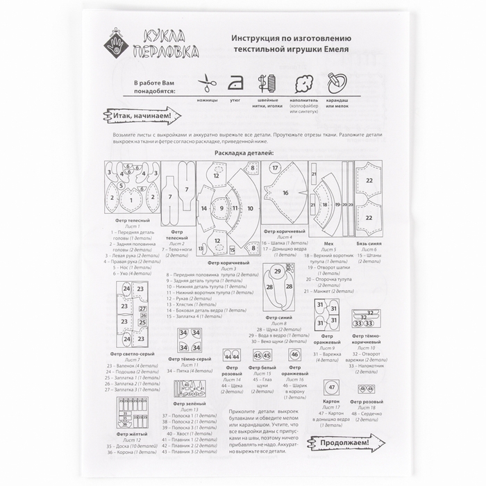 Набор по изготовлению текстильной игрушки «Емеля», высота — 21 см
