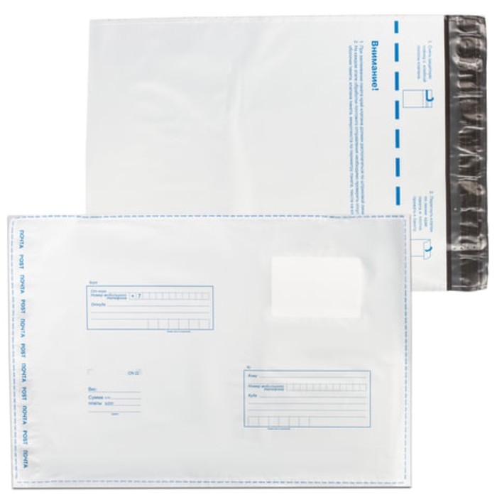 Набор почтовых пакетов №4, В4 250 х 353 мм, поле "Кому-куда", полиэтилен 65 г/м2, 10 штук