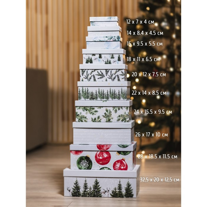 Набор подарочных коробок 10 в 1 «С НГ», 12 х 7 х 4 - 32.5 х 20 х 12.5 см, Новый год