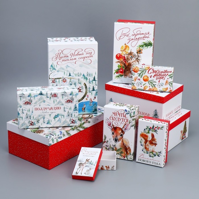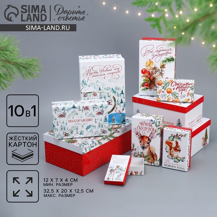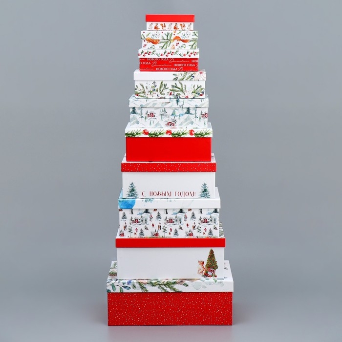 Набор подарочных коробок 10 в 1 «С НГ», 12 х 7 х 4 - 32.5 х 20 х 12.5 см, Новый год