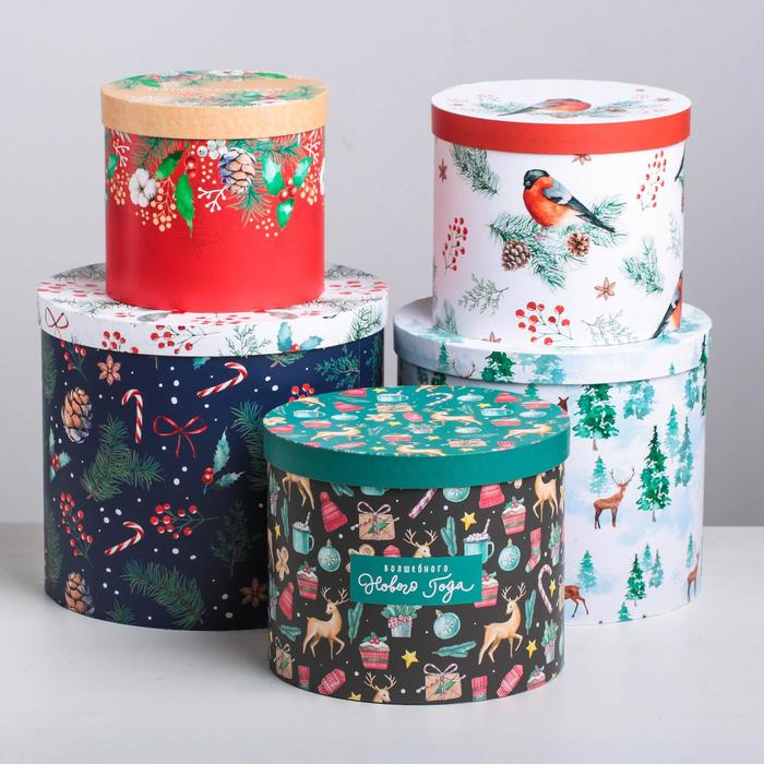 Набор подарочных коробок 5 в 1 «Европейский», 13 х 14‒19.5 х 22 см, Новый год