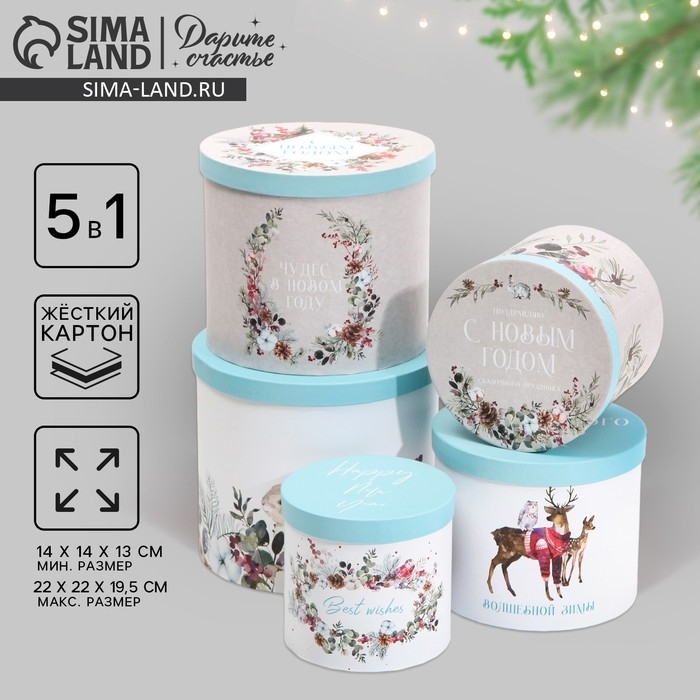 Набор подарочных коробок 5 в 1 «С Новым годом», 13 х 14‒19.5 х 22 см, Новый год