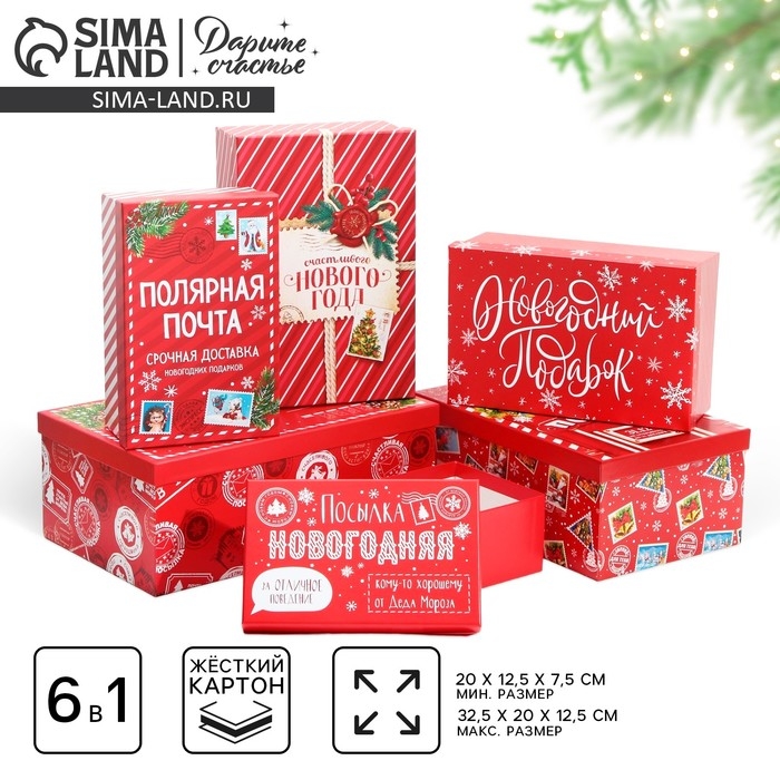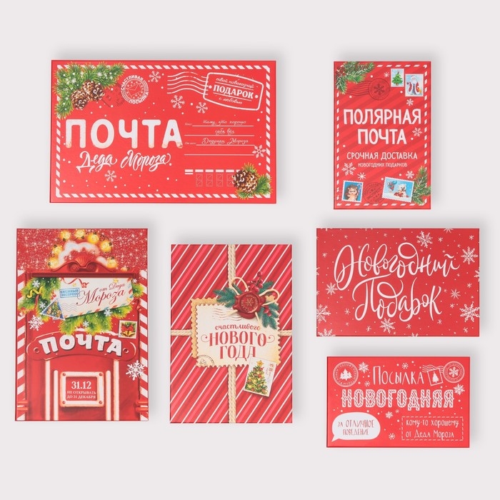 Набор подарочных коробок 6 в 1 «Почта», 20 х 12.5 х 7.5 ‒ 32.5 х 20 х 12.5 см, Новый год