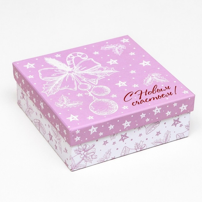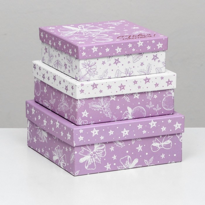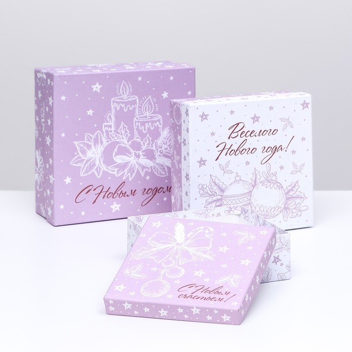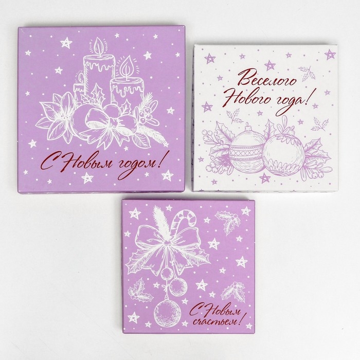 Набор подарочных новогодних коробок 3 в 1 "С Новым счастьем!", 19 х 19 х 7,5 - 14 х 14 х 4 см. Новый год