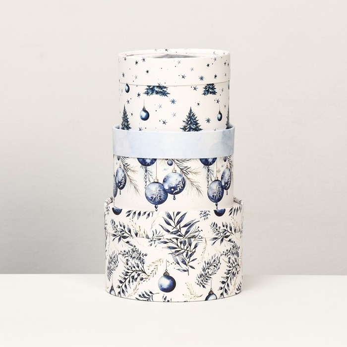 Набор подарочных новогодних коробок 3 в 1 "Шарики", 16 х 10, 14 х 9, 13 х 8,5 см. Новый год