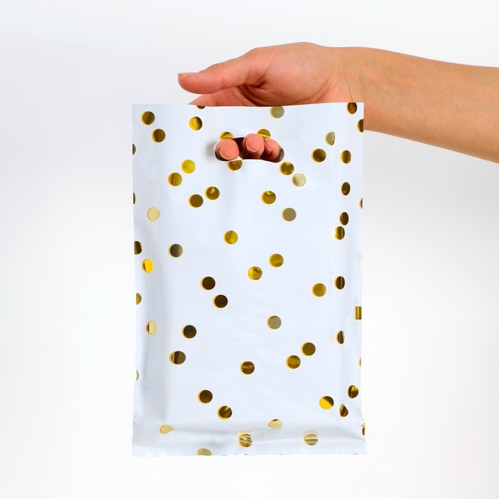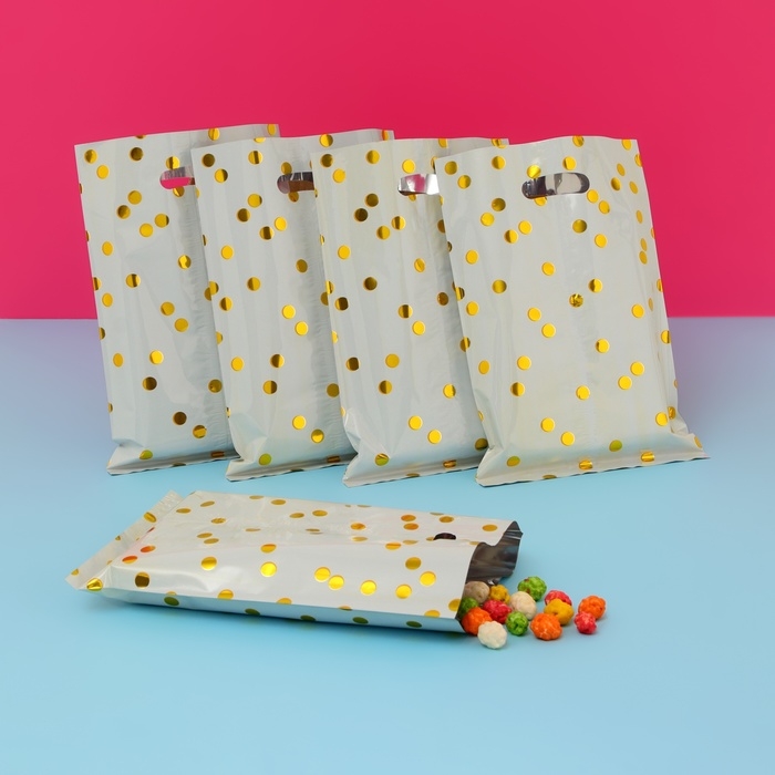 Набор подарочных пакетов, металлизированныей, "Горох" белый 17х25 см , 20 микрон 10 шт набор