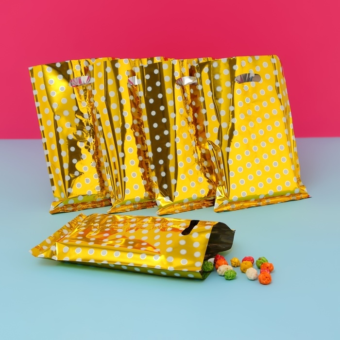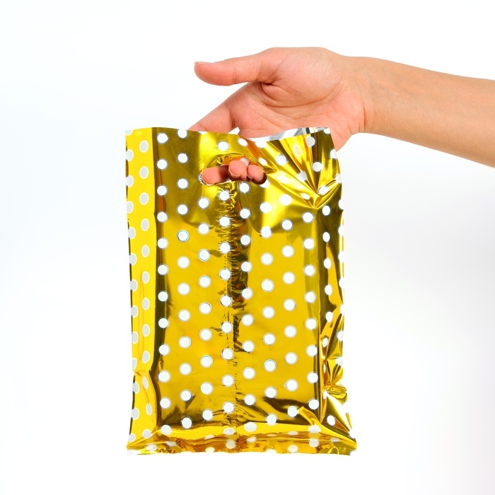 Набор подарочных пакетов, металлизированныей, "Горох" золотой 17х25 см , 20 микрон