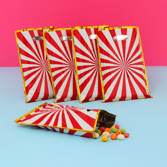 Набор подарочных пакетов, металлизированныей, "Веер" красный 17х25 см , 20 микрон 10 шт набор