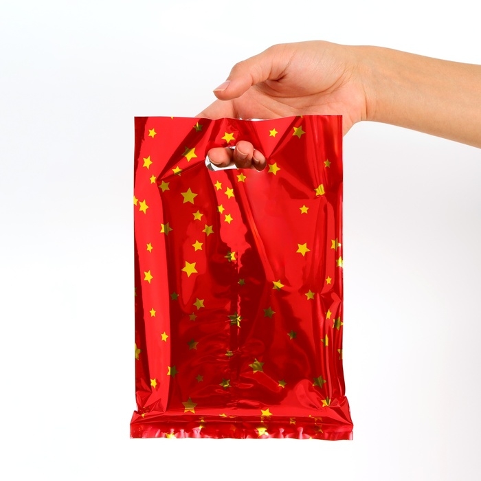 Набор подарочных пакетов, металлизированныей, "Звездочки" красный 17х25 см , 20 микрон 10шт набор