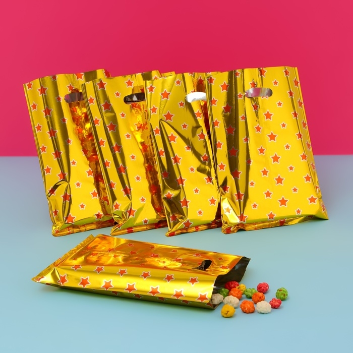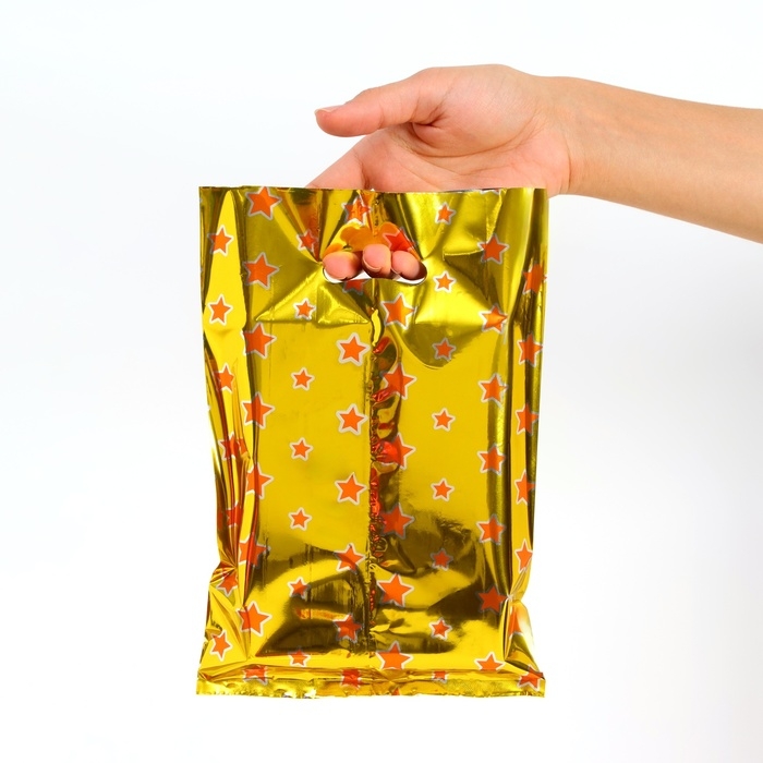 Набор подарочных пакетов, металлизированныей, "Звездочки" золотой 17х25 см , 20 микрон 10 шт набор