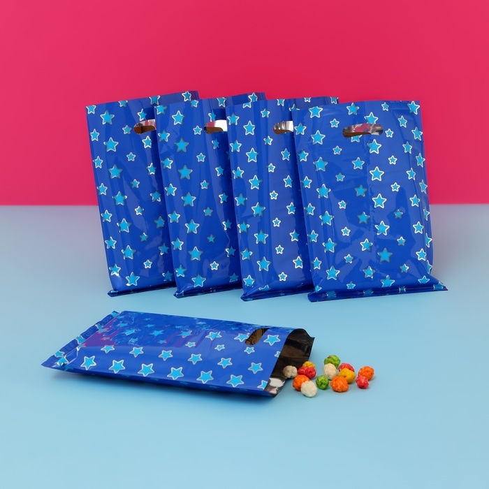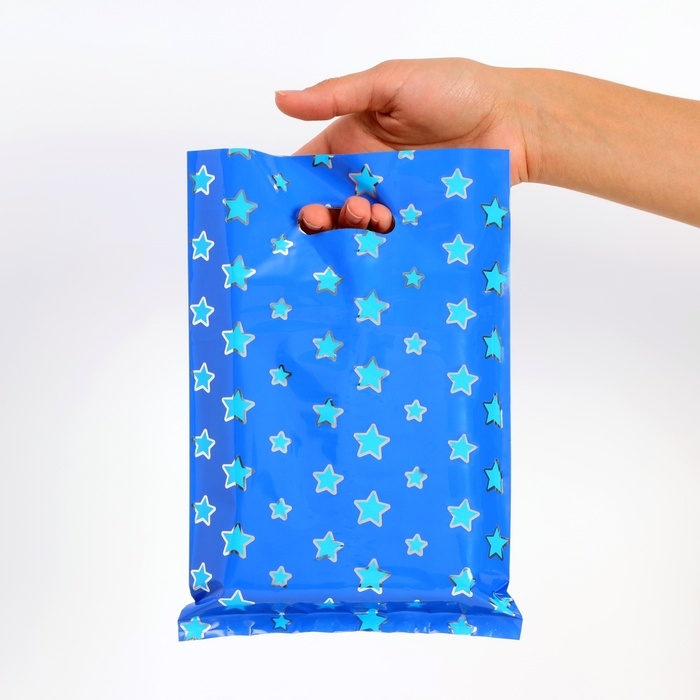 Набор подарочных пакетов, металлизированныей, "Звёзды" синий 17х25 см , 20 микрон 10 шт набор