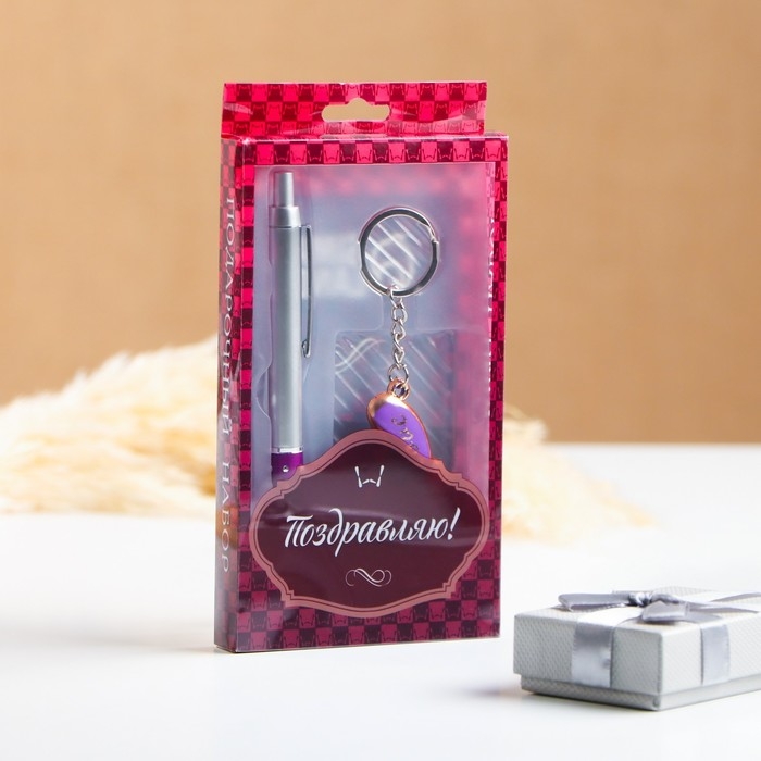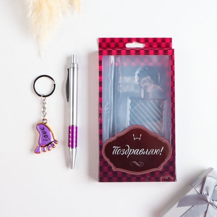 Набор подарочный 2в1 (ручка, брелок след) микс
