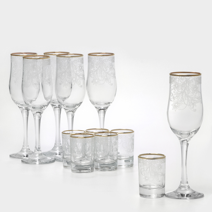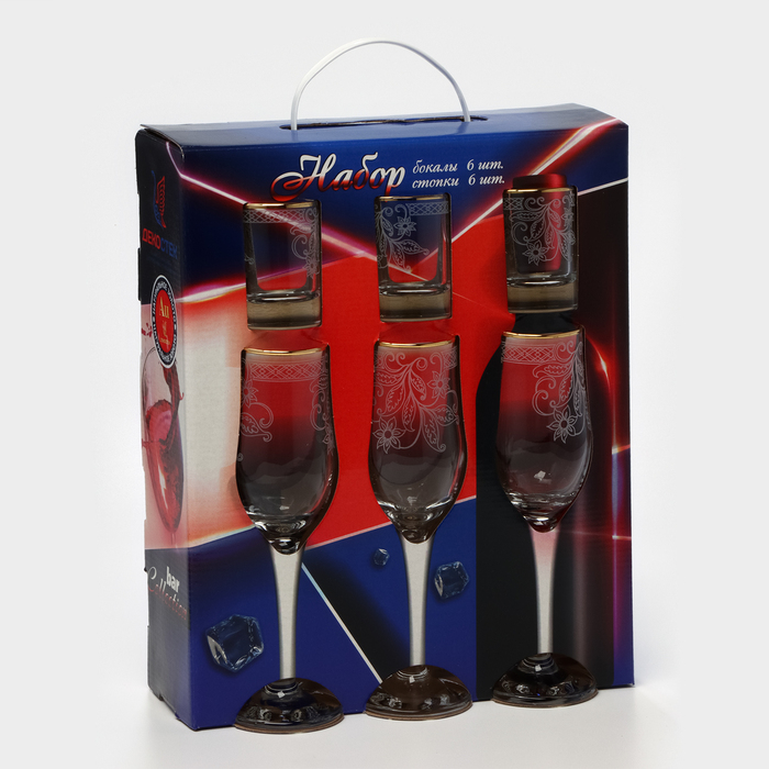 Набор подарочный «Акация», стеклянный, 12 предметов: 6 бокалов 200 мл, 6 стопок 50 мл, гравировка, отводка золотом