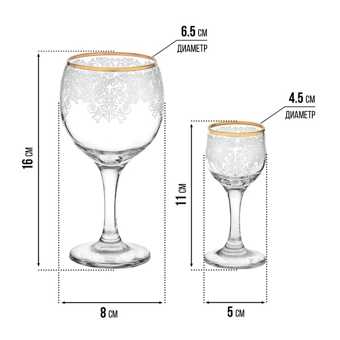 Набор подарочный «Боярский», стеклянный, 12 предметов: 6 фужеров 260мл, 6 рюмок 60 мл, гравировка, отводка золотом