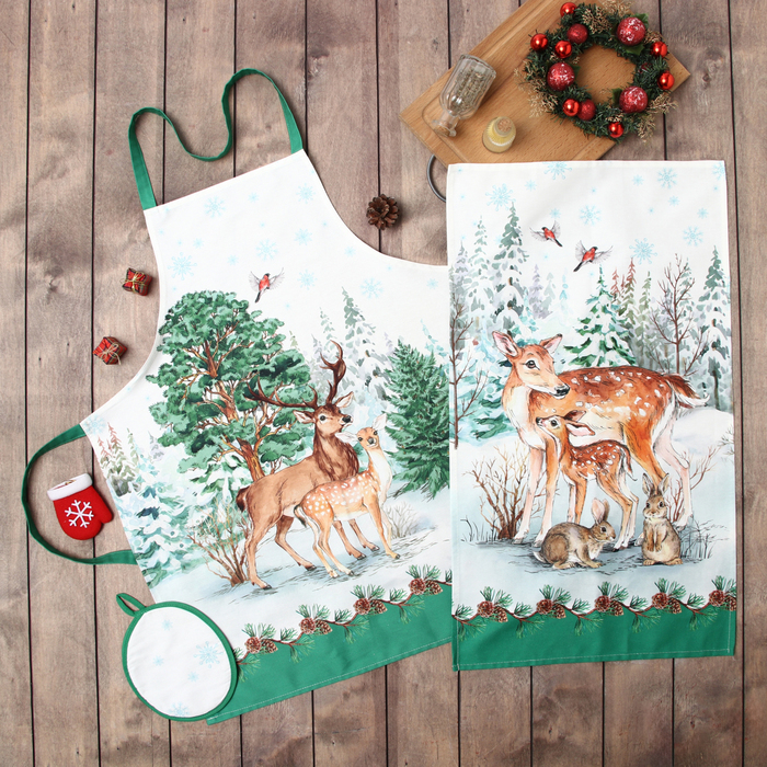 Набор подарочный "Этель" Новогодний лес, фартук, полотенце, прихватка