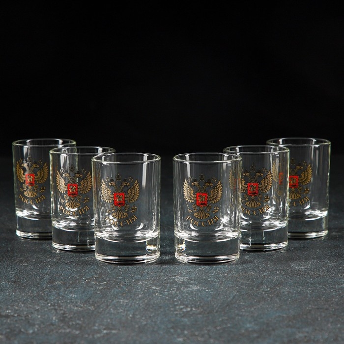 Набор подарочный «Золотой Герб России», 6 стопок 50 мл, пепельница