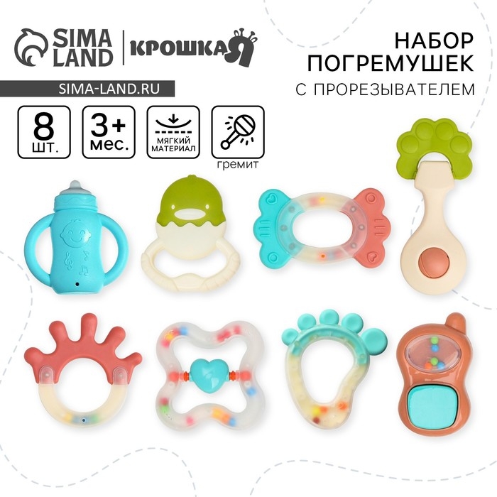 Погремушки - это не просто игрушки, это ключевой элемент в развитии малыша. Они помогают развивать мелкую моторику, зрительное и слуховое восприятие и улучшают координацию движений. В нашем наборе вы найдете разнообразные погремушки с силиконовыми прорезывателями, которые помогут малышу справляться с режущимися зубками. Мягкий силикон без острых углов обеспечивает безопасность и комфорт для ребенка.