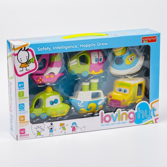 Набор погремушек «Розовый слон. Машинки», 6 шт., подарочная упаковка