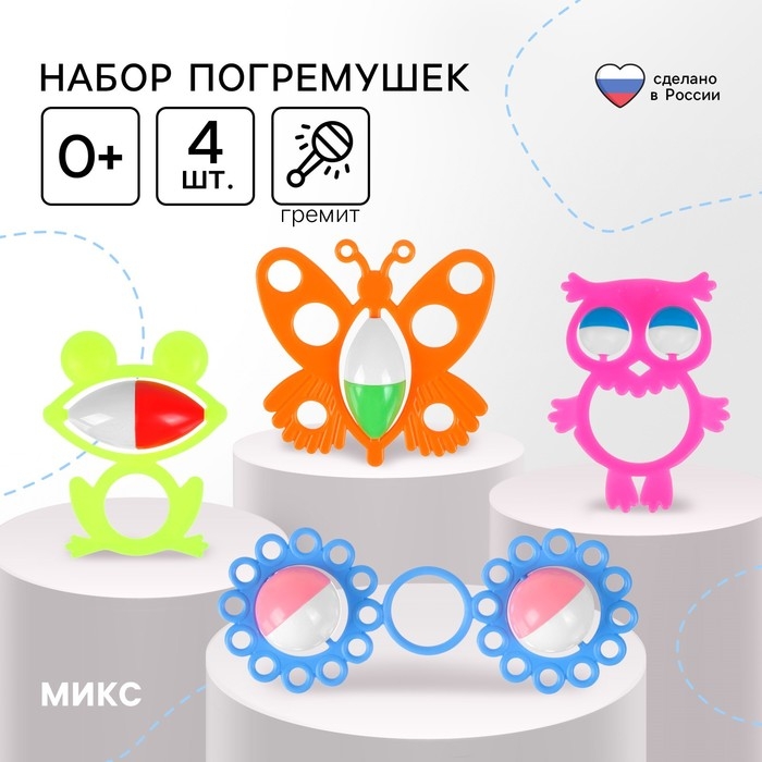 Набор погремушек «Весенняя компания», 4шт, цвет МИКС, Аэлита