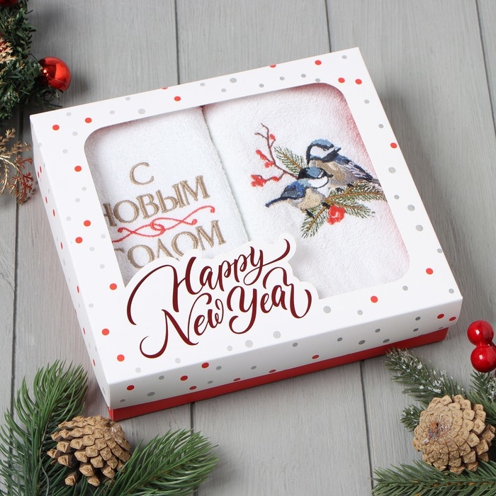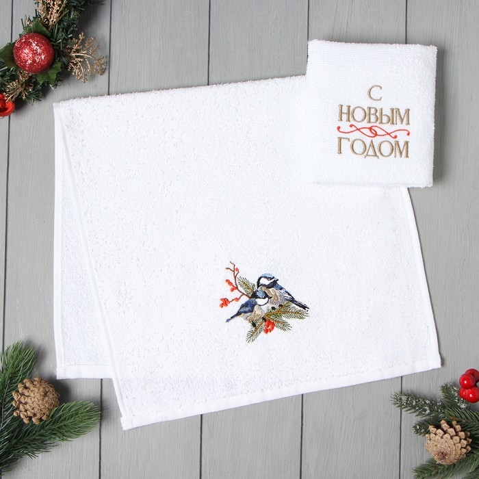 Набор полотенец Этель "Синицы" 30х60 см - 2 шт, 100% хлопок, 340 г/м2