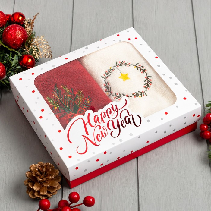 Набор полотенец Этель "Зимний букет" 30х60 см-2шт, 100% хлопок 340 г/м2