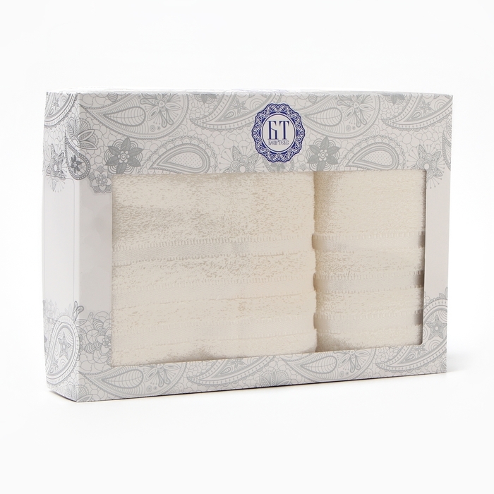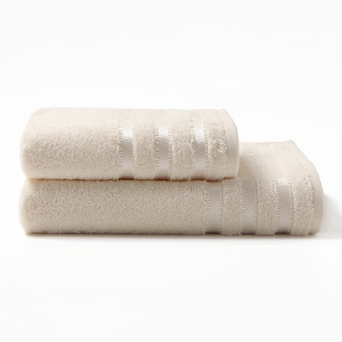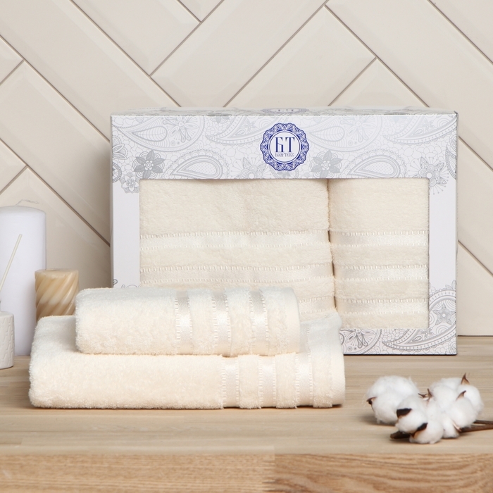 Набор полотенец в коробке Касадор 50х90см, 70х130см, молочный, махра 420г/м, хл100%
