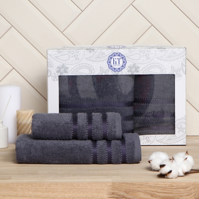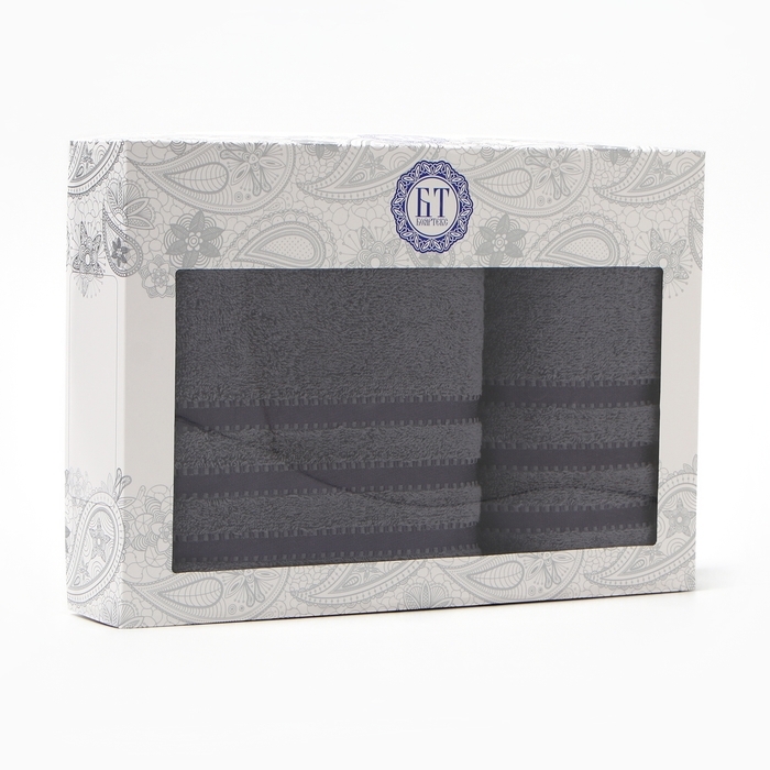 Набор полотенец в коробке Касадор 50х90см, 70х130см, тёмно-серый, махра 420г/м, хлопок 100%