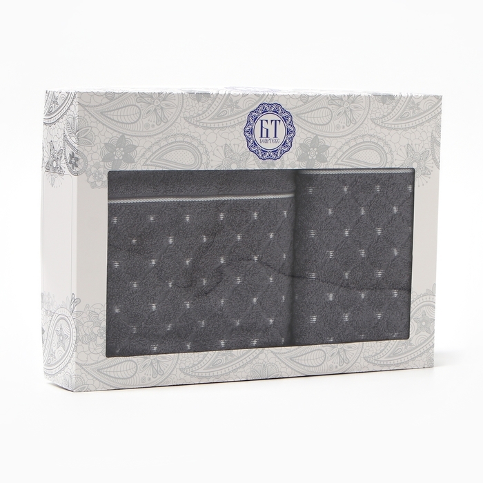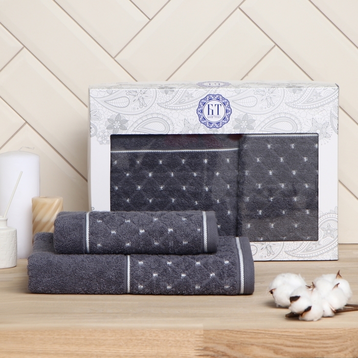 Набор полотенец в коробке Орион 50х90см, 70х130см, тёмно-серый, махра 420г/м, хлопок 100%