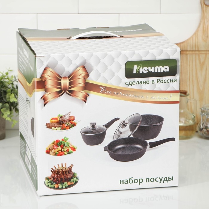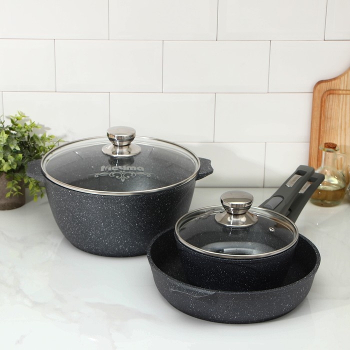 Набор посуды №1 «Гранит», 3 предмета: сковорода d=26 см, ковш 1,7 л, кастрюля 5 л, крышки, антипригарное покрытие