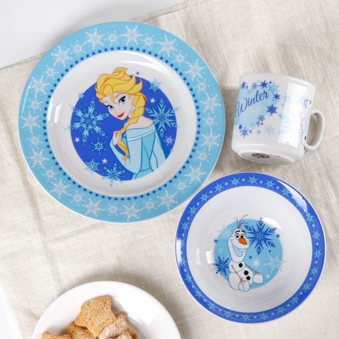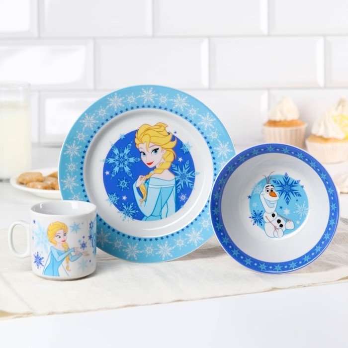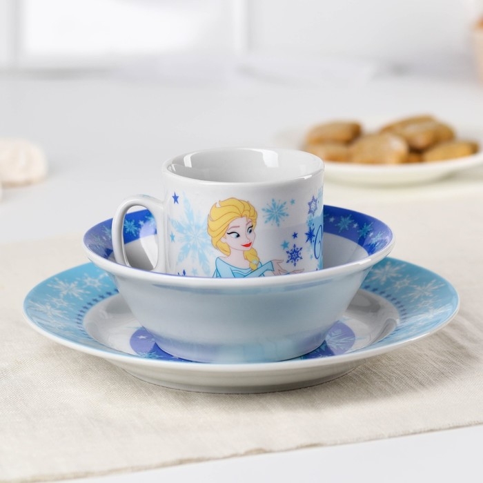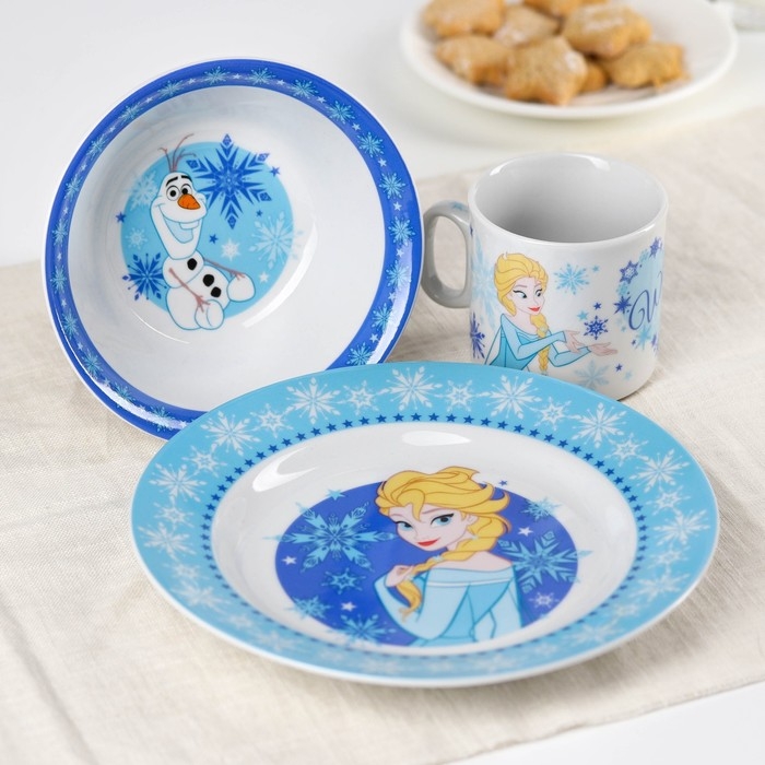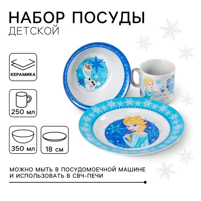 Набор посуды, 3 предмета: кружка 200 мл, тарелка 17 см, салатник 350 мл, Холодное сердце