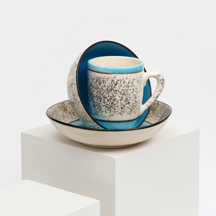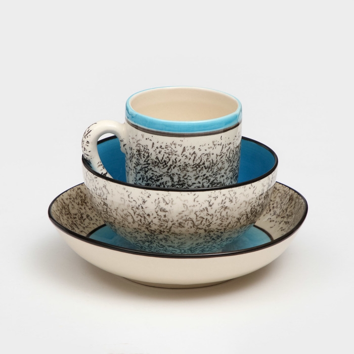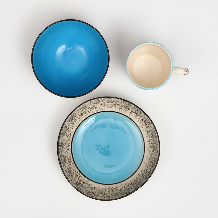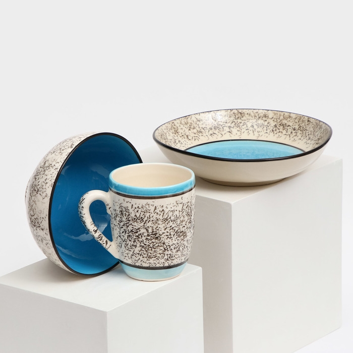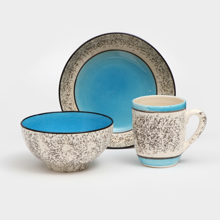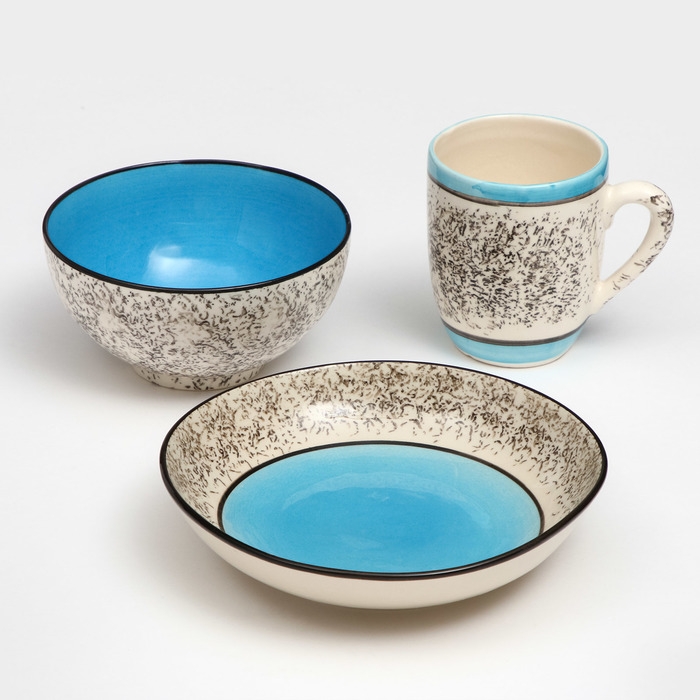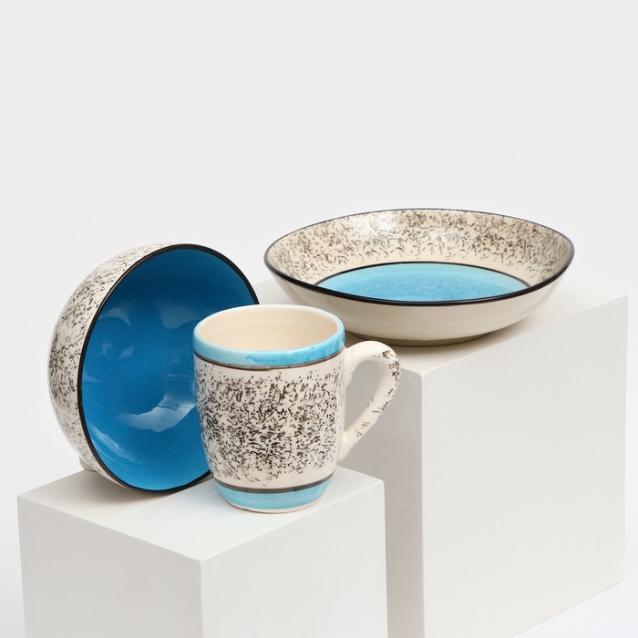 Набор посуды «Алладин», керамика, голубой, 3 предмета: салатник 700 мл, тарелка 20 см, кружка 350 мл, 1 сорт, Иран