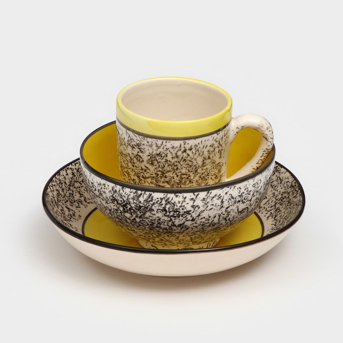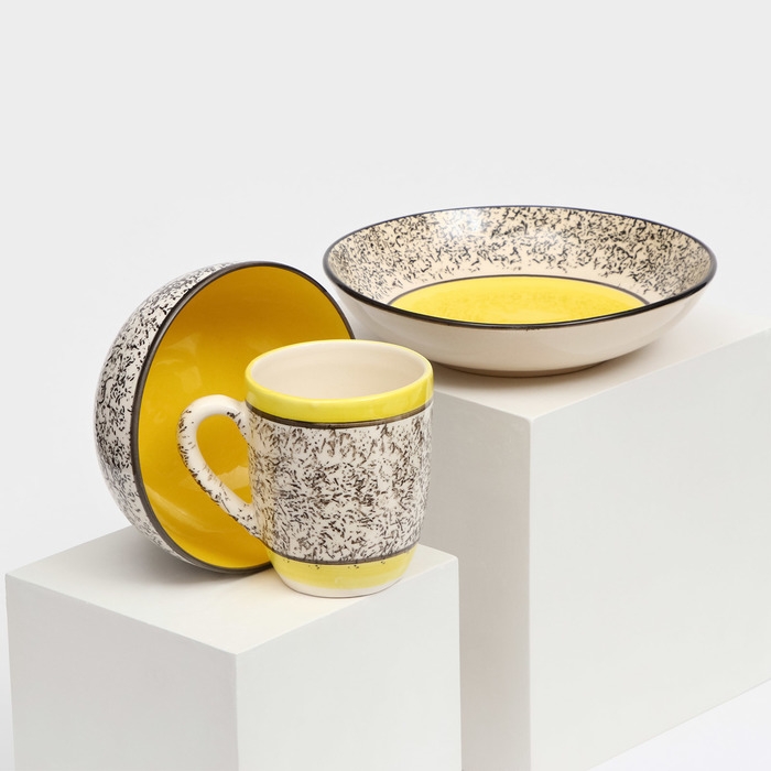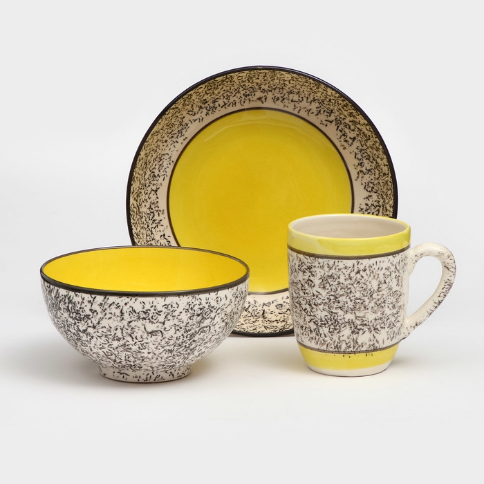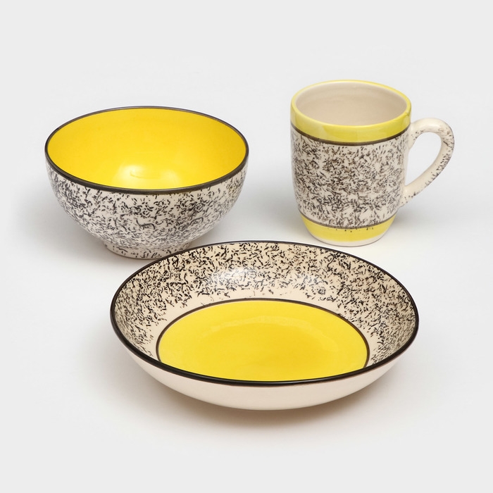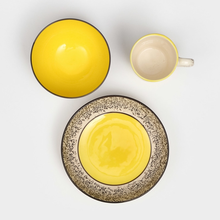 Набор посуды «Алладин», керамика, желтый, 3 предмета: салатник 700 мл, тарелка 20 см, кружка 350 мл, 1 сорт, Иран