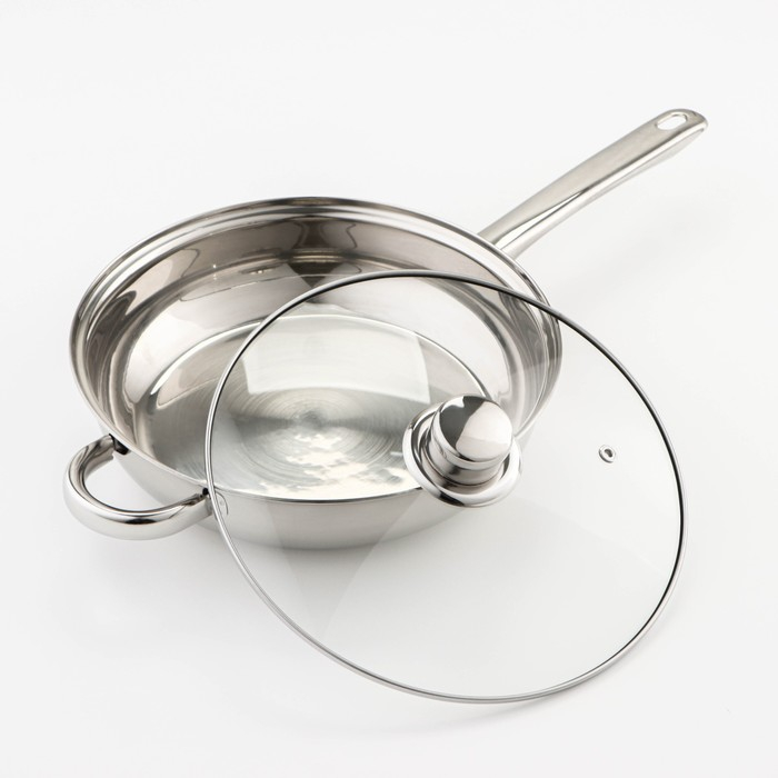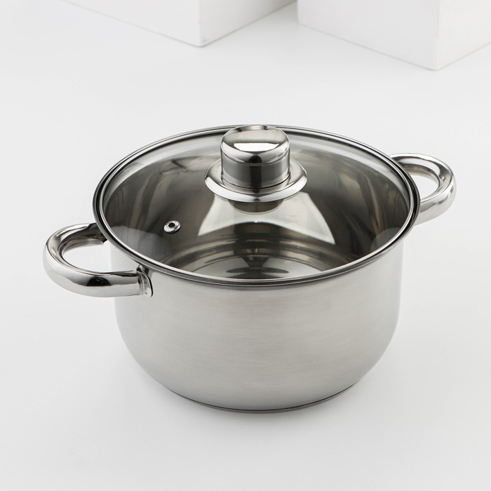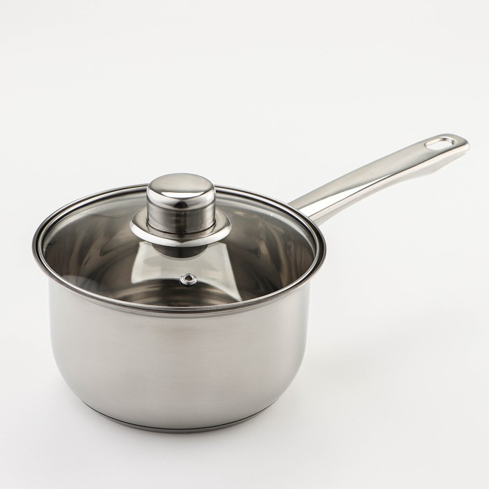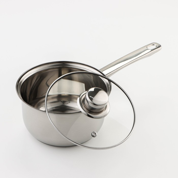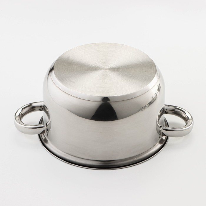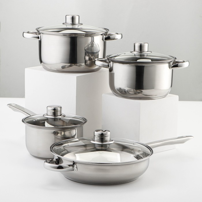 Набор посуды из нержавеющей стали Доляна «Классика», 8 предметов: ковш 1,5 л, 2 кастрюли 2/3 л, сковорода d=24 см, крышки, стенки 0,3 мм, дно 5 мм
