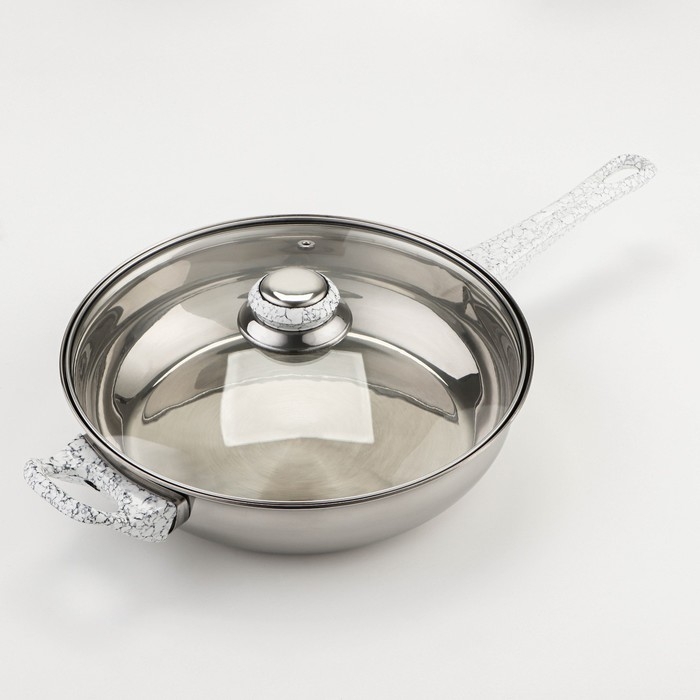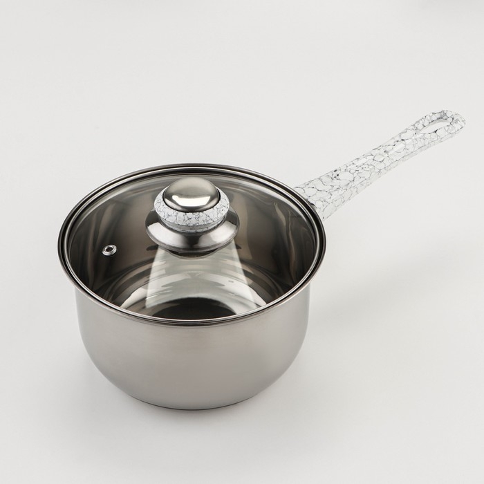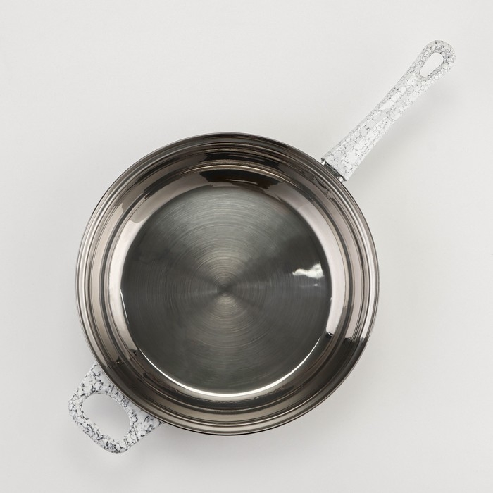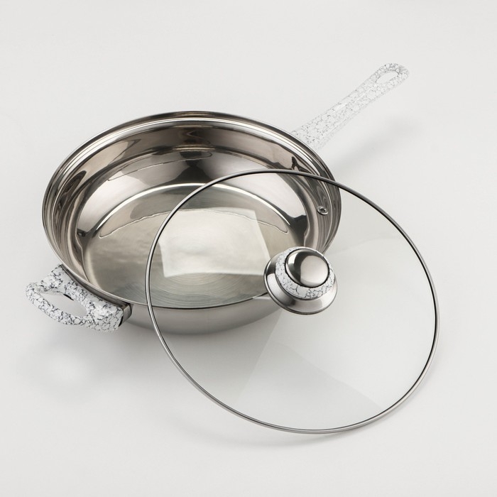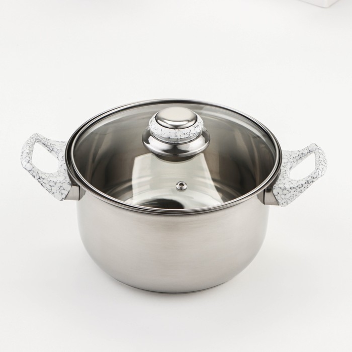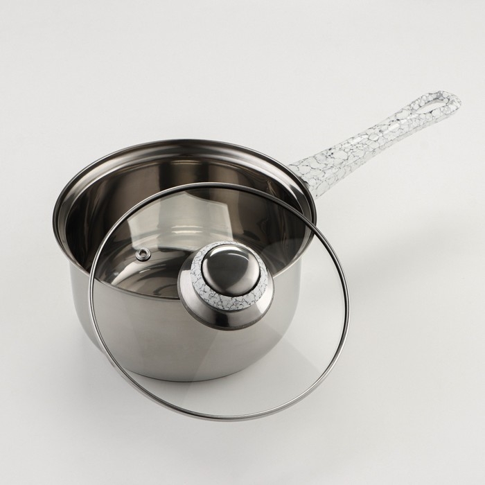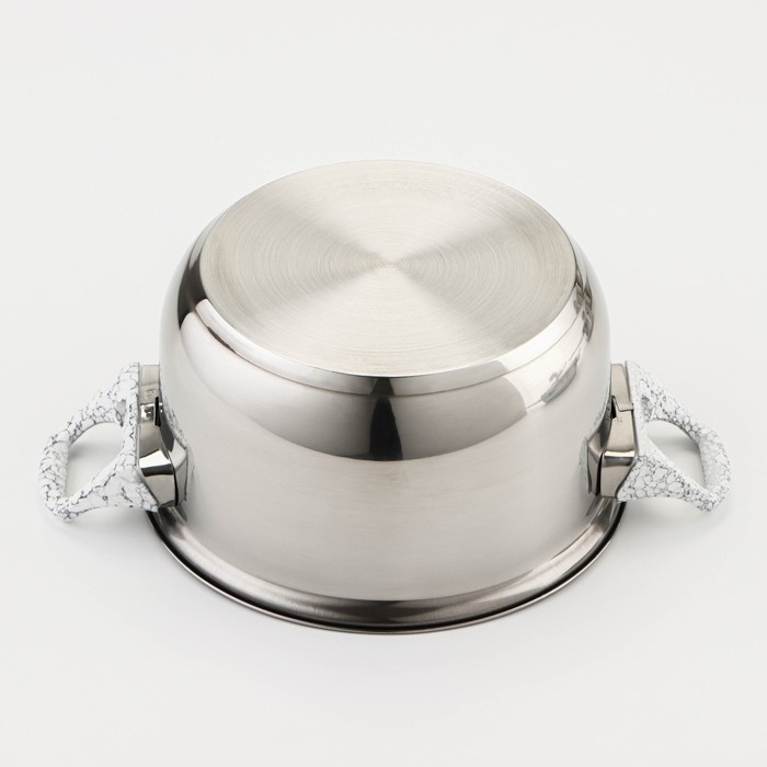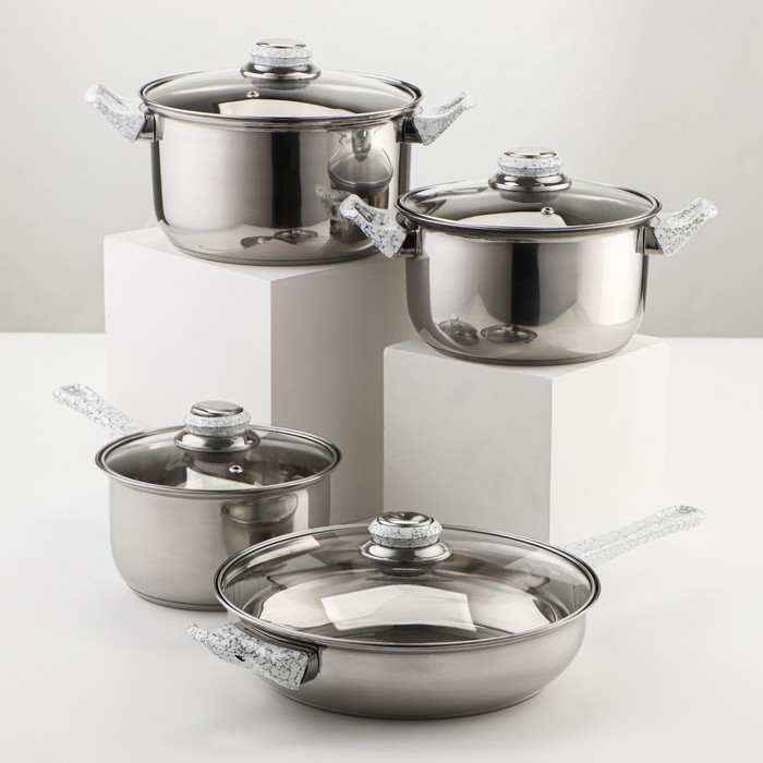 Набор посуды из нержавеющей стали Доляна «Мрамор», 8 предметов: ковш 1,5 л, 2 кастрюли 2/3 л, сковорода d=24 см, крышки, стенки 0,3 мм, дно 5 мм