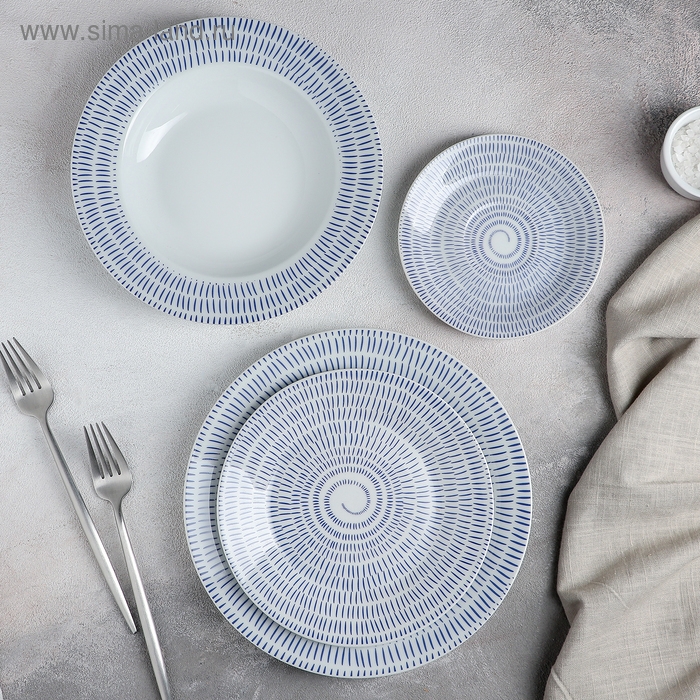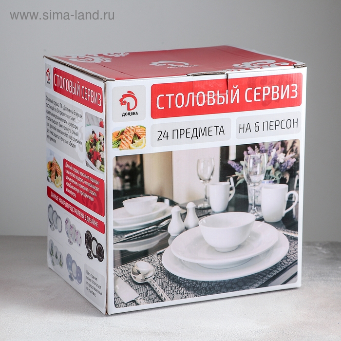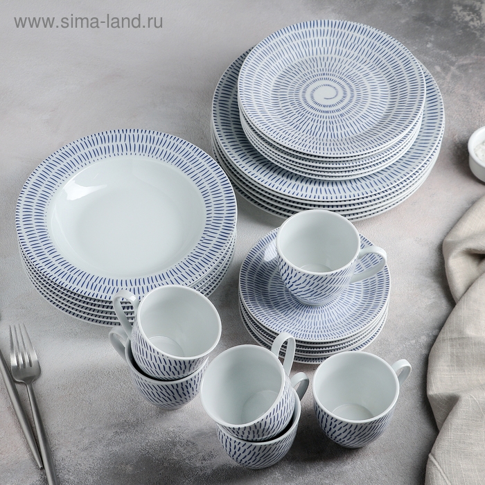 Набор посуды керамической Доляна «Антик», 24 предмета: тарелки d=19,5/20,5/24 см, чайная пара 200 мл, цвет белый