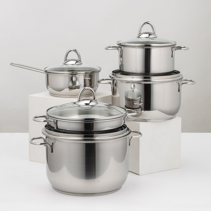 Набор посуды «Классика-прима», 5 предметов: 4 кастрюли 1 л, 1,75 л, 3 л,5 л, сковорода 1 л, капсульное дно, индукция