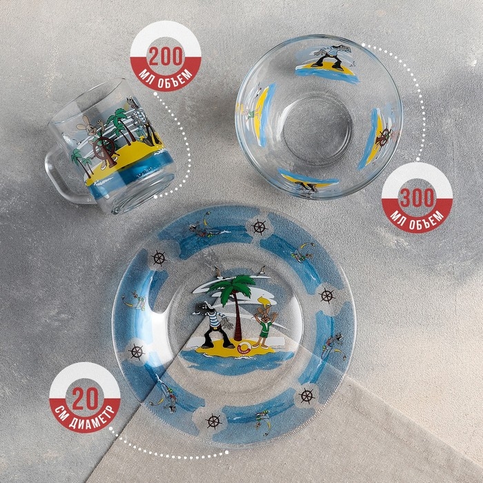 Набор посуды "Ну, погоди!", 3 предмета: кружка 200 мл, салатник 300 мл, тарелка 20 см