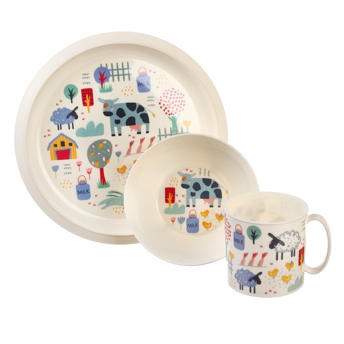 Набор посуды с декором: тарелка D215 мм, миска D130 мм, кружка 280 мл