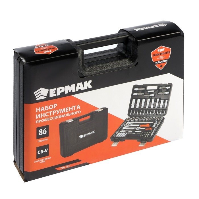 Набор профессионального инструмента ЕРМАК 736-195, CrV, 1/2" 1/4", 86 предметов