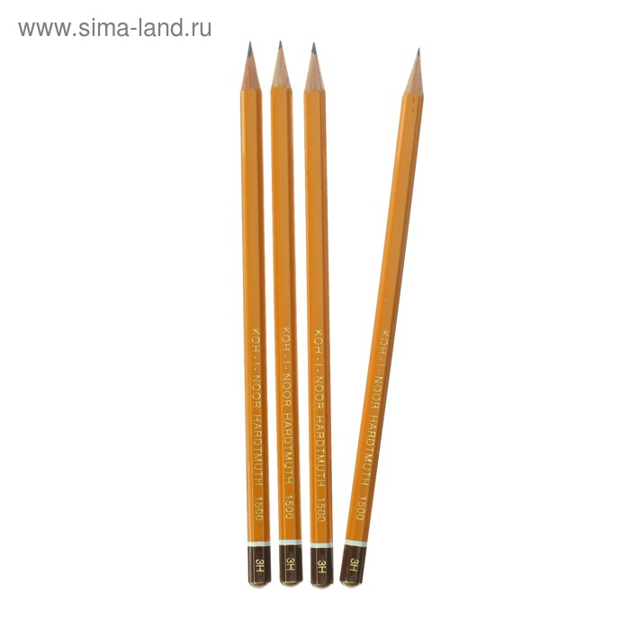 Набор профессиональных чернографитных карандашей 4 штуки Koh-I-Noor 1500 H3, заточенные (786596)