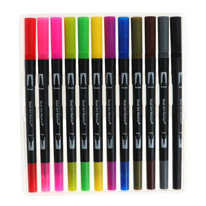 Набор профессиональных маркеров, 12 штук/12 цветов, двусторонний