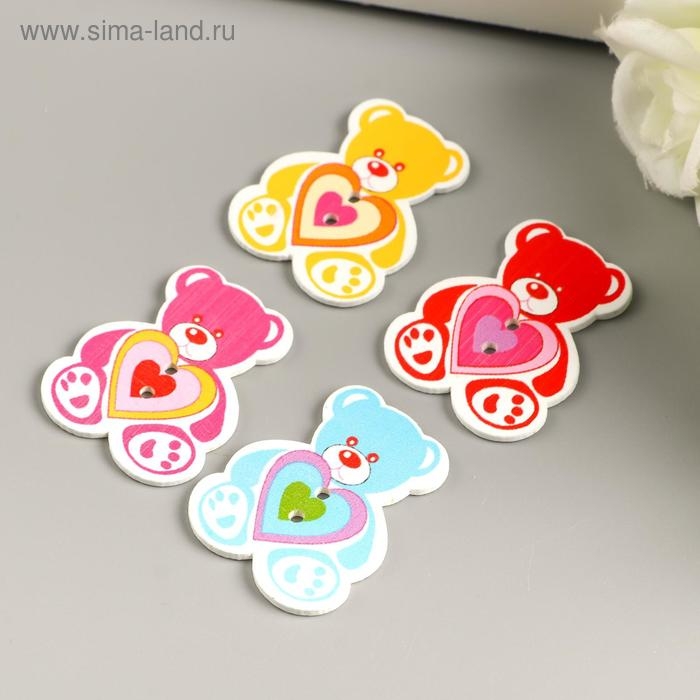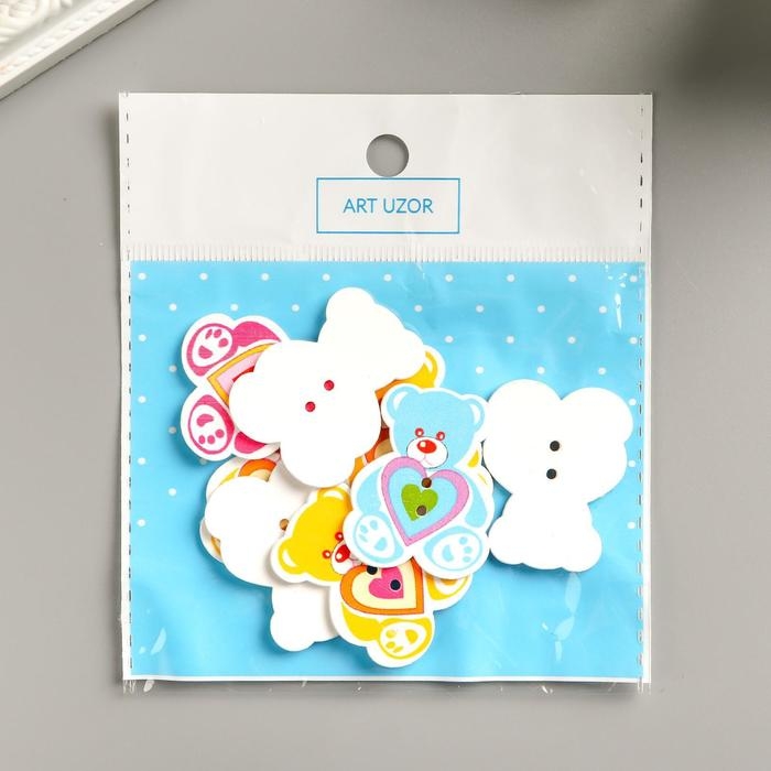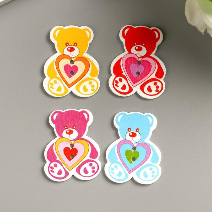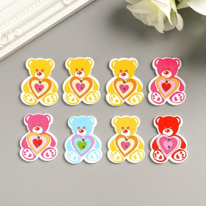 Набор пуговиц декоративных дерево "Медвежонок" (набор 8 шт) 3х4 см